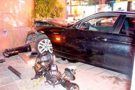 Khi người bảo vệ lái xe đến giao lộ trên thì bất ngờ lạc tay lái khiến chiếc xe chao đảo mạnh rồi quẹo thẳng sang trái, leo lên vỉa hè, đâm gãy cột đèn chiếu sáng rồi tông thẳng vào Bệnh viện Phụ sản Quốc tế.