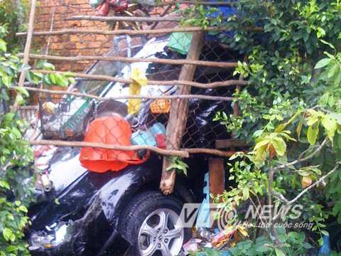 | Chiếc xe hơi nằm lọt thỏm trong căn nhà của anh Nguyễn Tấn Huynh |
