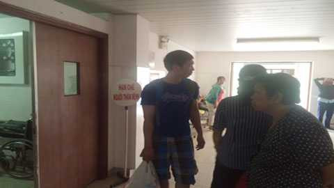 | Anh Long, em trai anh Vương vừa từ Canada trở về (áo thun xanh) rất lo lắng cho anh trai tại bệnh viện. Ảnh: Thanh Huyền. |