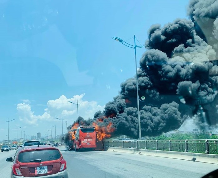 Sau khi thấy cháy, tài xế cho xe dừng bên đường, đồng thời gọi tất cả hành khách nhanh chóng xuống xe.