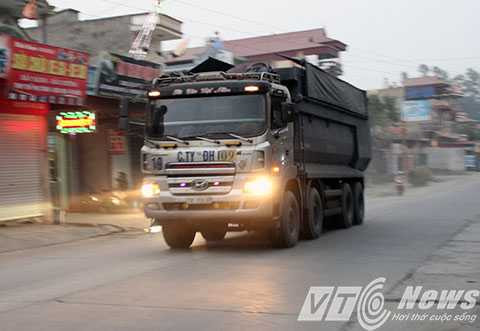 Theo ghi nhận của PV VTC News, con đường xuyên qua hai thị trấn này chỉ chưa đầy 5km nhưng mỗi ngày có đến cả nghìn lượt xe tải quần thảo. Không kể ngày hay đêm, hàng đoàn xe nối đuôi nhau chạy rầm rầm qua hai thị trấn này. Đất đá, bụi than đen sì trải đầy mặt đường. Hầu hết những nhà mặt đường đều phải đóng kín cửa để tránh khói bụi. Nhà nào bán hàng quán thì chỉ vài tiếng lại phải tưới nước một lần.
