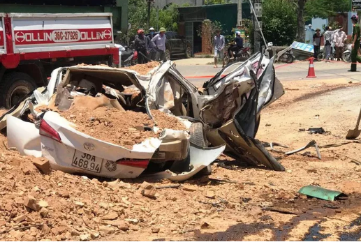 Như VTC News đưa tin, khoảng 11h15 ngày 4/6, trên tuyến đường Nghi Sơn - Sao Vàng (thuộc địa phận xã Vân Sơn, huyện Triệu Sơn, Thanh Hóa), xe Toyota Vios BKS 36A - 468.94 đang đi trên đường thì bị xe tải Howo BKS 36C -171.15 lật nghiêng, đè bẹp dúm.