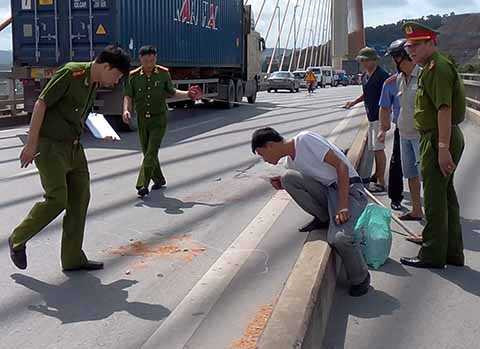 (VTC News) - Xe tải cuốn xe máy vào gầm rồi kéo lê trên cầu Bãi Cháy khoảng 200m, 2 người ngồi trên xe máy văng xuống đường tử vong tại chỗ.