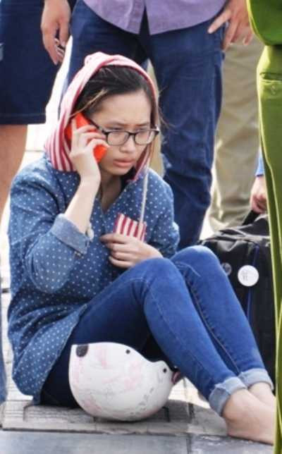 Một cố gái thoát nạn trong vụ tai nạn sợ hãi cầm điện thoại gọi cho người thân