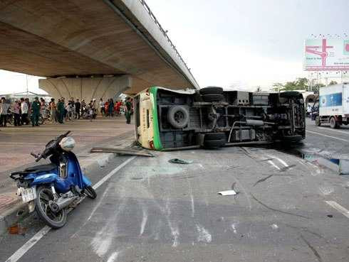 Hậu quả, cú va chạm mạnh đã khiến xe khách 29 chỗ bị lật, nằm ngang đường. Hiện chưa rõ thiệt hại về người và tài sản sau vụ việc trên.