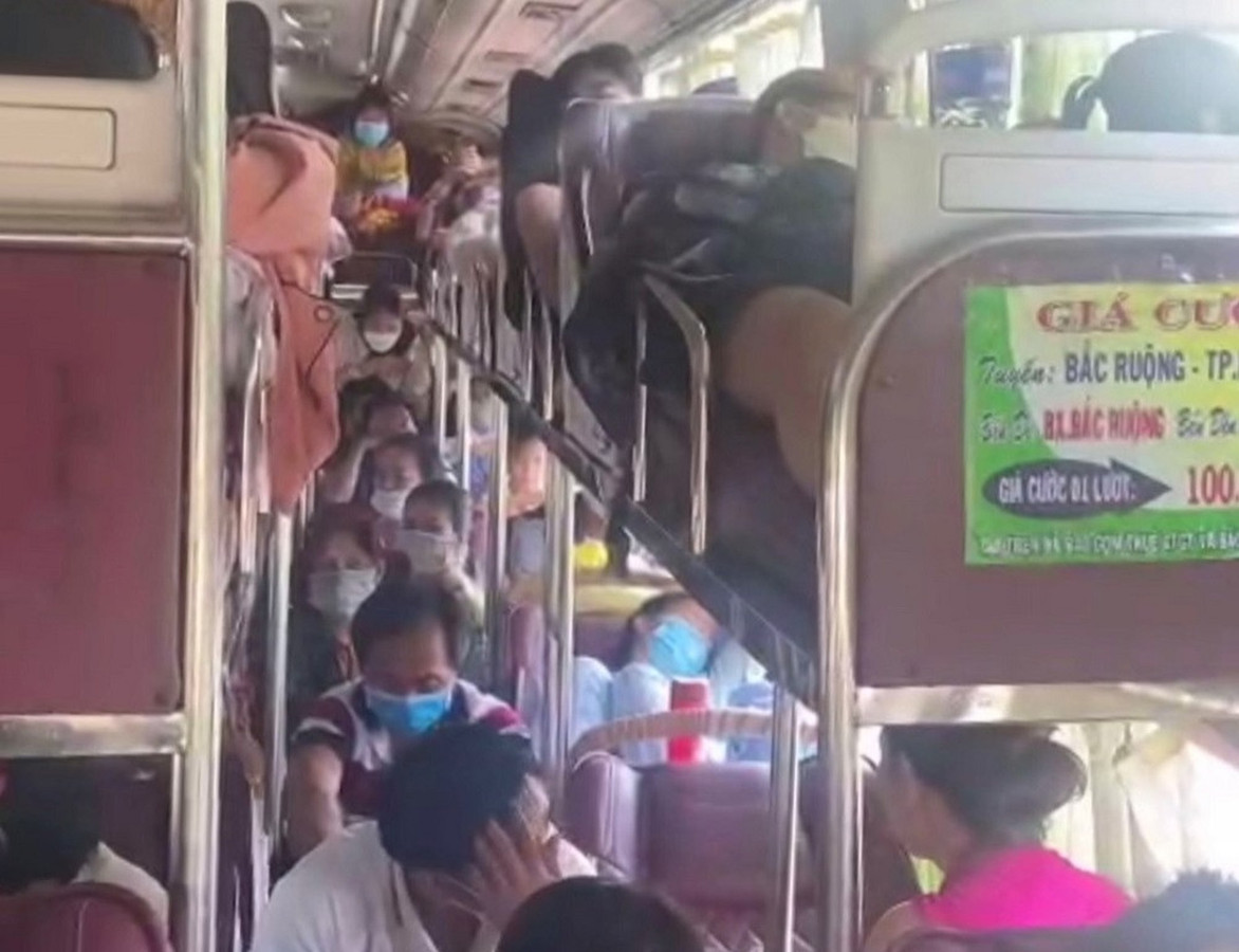 Hành khách vượt quá quy định được ngồi ngay lối đi. (Ảnh công an cung cấp)
