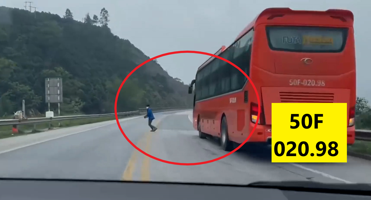 Xe khách 50F-020.98 suýt gây ra tai nạn vì đón trả khách trên cao tốc
