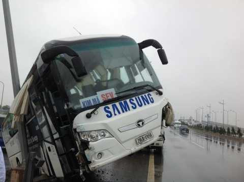 Vào khoảng 9h sáng 29/12, tại đường cao tốc Nội Bài – Nhật Tân hướng Nội Bài về Hà Nội đã xảy ra một vụ va chạm giao thông giữa xe tải mang BKS 29C – 289.61 và xe ô tô khách loại 60 chỗ mang BKS 29LD – 018.56 dán logo của công ty Samsung.
