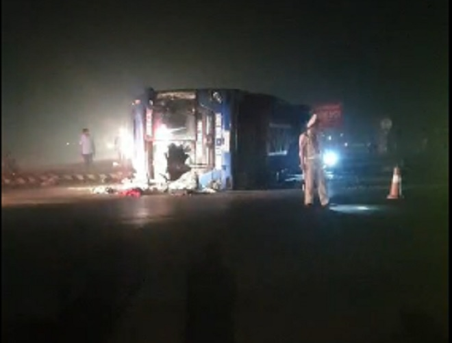 Theo quan sát của một số người dân có mặt tại hiện trường, xe bồn chở dầu đâm vào đuôi xe khách mang BKS tỉnh Quảng Ninh. Xe khách đang hành trình từ tỉnh Ninh Bình đi TP Móng Cái (Quảng Ninh).