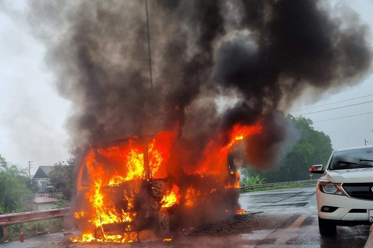 Chiếc xe khách bốc cháy ngùn ngụt.