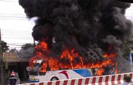 Lúc này tài xế cho xe tấp vào lề đường để tiến hành sửa chữa. Do việc khắc phục sự cố mất khoảng 30 phút nên một số hành khách đã xuống khỏi xe. Việc sửa chữa đang diễn ra thì bất chợt phần máy phía sau của xe bốc khói đen kèm theo lửa đỏ rực. Chỉ trong khoảng thời gian ngắn, ngọn lửa đã bao trùm cả chiếc ô tô. Ngay lập tức mọi người hô hoán, tìm cách dập lửa và báo cho nhóm người đang ngồi trên xe.