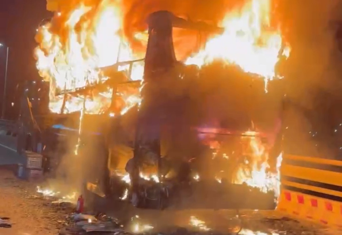 Phát hiện sự việc, tài xế dừng xe giữa cầu và kêu gọi hành khách nhanh chóng xuống xe. Người đi đường và tài xế cố gắng dập lửa nhưng bất thành.