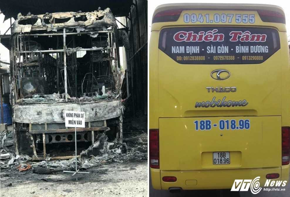 Theo tìm hiểu của PV, chiếc xe khách bị cháy mang BKS 18B-01811. Đây là xe giường nằm 40 chỗ, chạy tuyến Hải Hậu – Sài Gòn – Bình Dương.