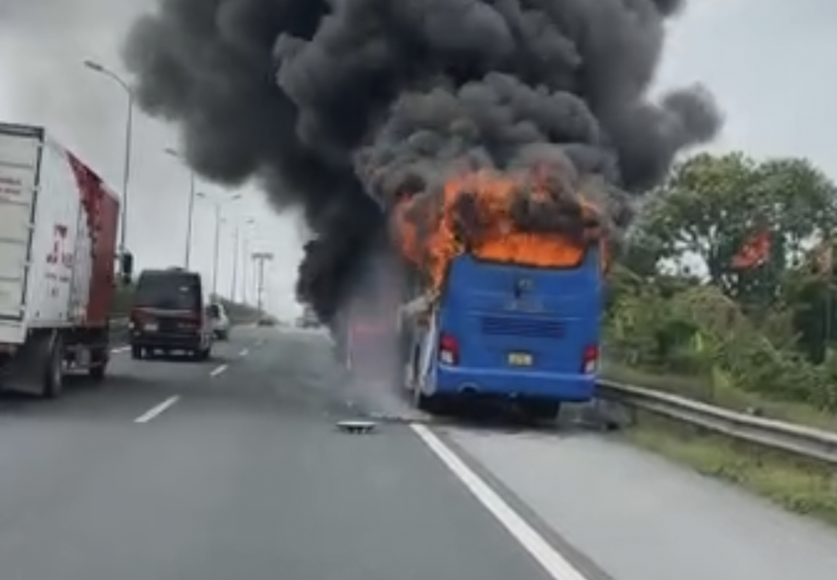 Chiếc xe khách cháy ngùn ngụt trên cao tốc.