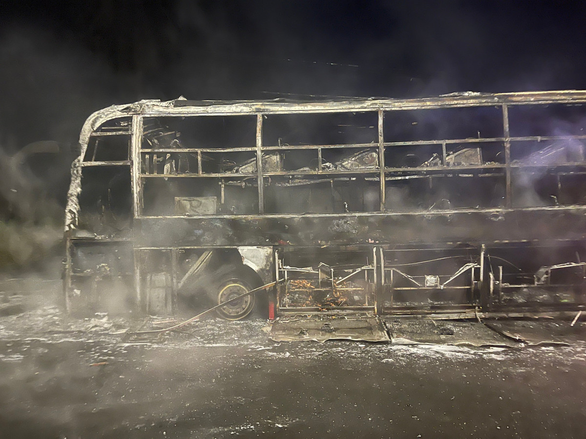 Phát hiện sự cố, lái xe lập tức di chuyển xe vào lề đường, hô hoán tất cả hành khách xuống xe. Chỉ sau ít phút, ngọn lửa lan nhanh và bao trùm toàn bộ chiếc xe.