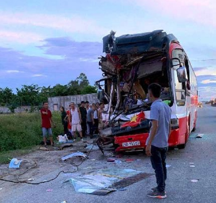 Vào khoảng 5h ngày 6/7, xe khách BKS 29B-191.03 (chưa rõ danh tính tài xế) chạy trên quốc lộ 1A theo hướng Hà Nội - Vinh. Khi đến xã Diễn Hồng, huyện Diễn Châu (Nghệ An), xe khách tông vào đuôi xe container mang BKS 76C-04542 kéo theo rơ-moóc BKS 76R-00289 do tài xế Nguyễn Hồng Luân (SN 1982, trú tại xã Nghĩa Kỳ, huyện Tư Nghĩa, Quảng Ngãi) đang dừng bên vệ đường.