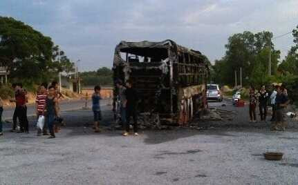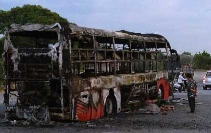 | Xe khách cháy rụi chỉ còn khung sắt |