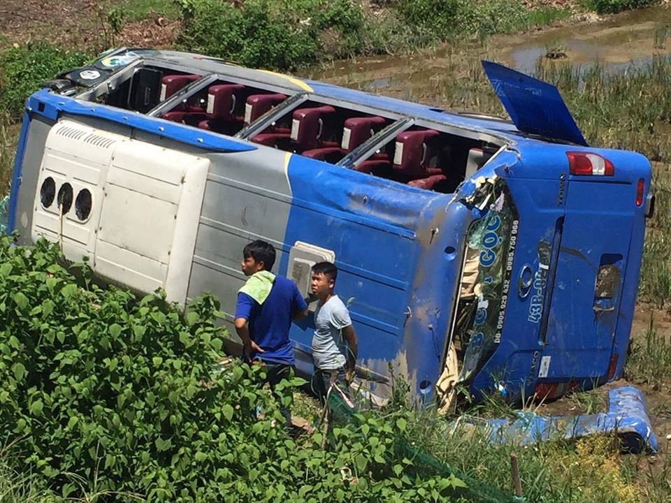 Theo đó, vào thời điểm trên, xe khách mang biển số Đà Nẵng chở hơn 20 hành khách đang lưu thông trên quốc lộ 1A thì đâm vào cột mốc ven đường rồi lao thẳng xuống ruộng.