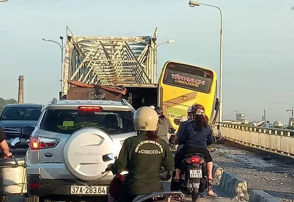 Sau tai nạn, chiếc xe mắc kẹt, chắn ngang phần làn đường lưu thông hướng Hà Tĩnh - TP Vinh. Vụ tai nạn khiến giao thông qua cầu Bến Thủy 1 bị ách tắc nghiêm trọng. Các phương tiện lưu thông từ Hà Tĩnh ra TP Vinh phải quay đầu, lưu thông theo cầu Bến Thủy 2.