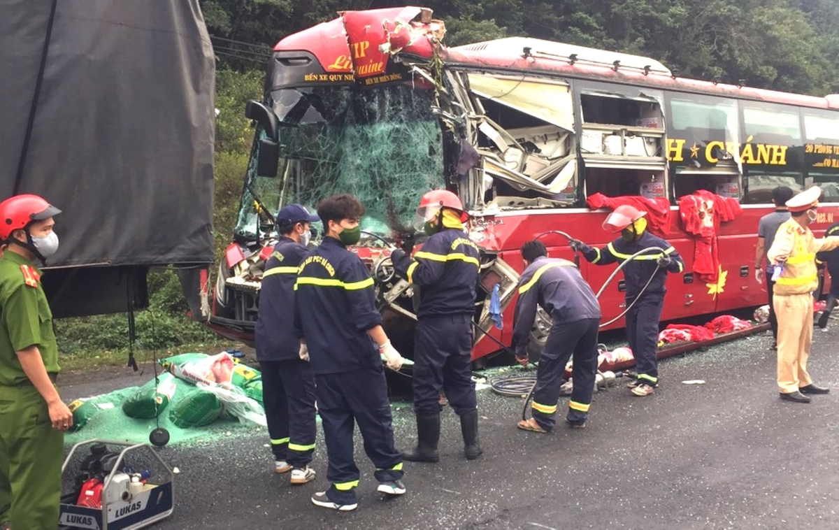 Khi đến đỉnh đèo Nại thì xe khách đâm vào đuôi xe đầu kéo BKS 78C-05.130 kéo rơ moóc BS 78R-00.267 do tài xế N.V.B (trú phường Hòa Vinh, thị xã Đông Hòa, Phú Yên đang chạy phía trước.