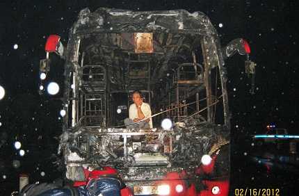 Xe khách giường nằm mang BKS 43B – 004.12, thuộc Công ty CP xe khách DV&TM Đà Nẵng do tài xế Phan Nhật Truyền (SN 1979, trú tại xã Quế Thuận, huyện Quế Sơn, tỉnh Quảng Nam) điều khiển đang lưu thông theo hướng Nam – Bắc khi đến địa điểm trên đã bị cháy rụi.