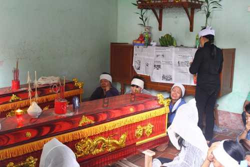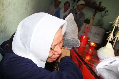 | Hai con là Cao Xuân Liêm và Cao Thị Bích Phượng gục bên quan tài của bố, mẹ |