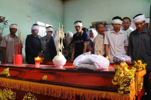 “Mẹ ơi, bố ơi, sao bố mẹ lại bỏ anh em con mà đi thế này. Giờ chúng con phải sống làm sao đây”, tiếng khóc của Phương khiến ai có mặt cũng không cầm được nước mắt.Cháu Liêm, con đầu của anh chị lúc ôm quan tài bố, lúc ôm quan tài mẹ nức nở không thành câu, thành tiếng. Cứ mỗi khi có người đến viếng, những tiếng kêu gào của con cái, của người thân càng thêm xót xa, đau lòng. Anh chị mất đi, khi dự định cho đứa con trai đầu đi xuất khẩu lao động, rồi lo công việc, học hành cho đứa con gái thứ hai chưa thực hiện được.