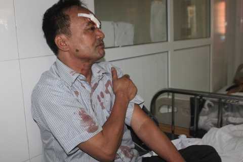 Nằm cấp cứu tại bệnh viện 115 Nghệ An với vết thương ở mặt và mất khá nhiều máu, ông Nguyễn Quang Đồng (59 tuổi - Trú ở Gia Lâm, Hà Nội) cho biết, lúc ông cùng mọi người đang ngủ thì bỗng nghe tiếng va chạm lớn, mọi người bị va đập vào ghế ngồi và cửa kính.