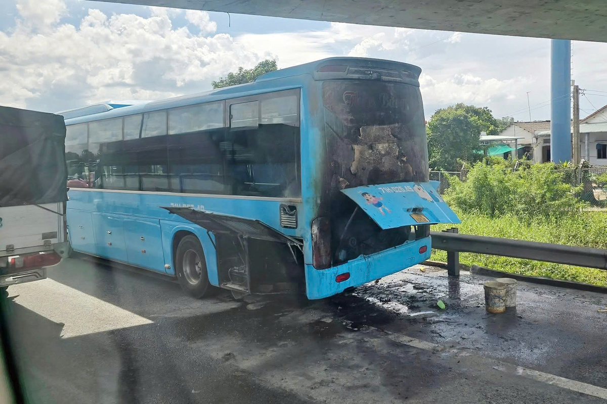 Ngay lập tức, tài xế cho xe vào làn dừng khẩn cấp để kiểm tra. Chỉ ít phút sau, ngọn lửa bất ngờ bùng phát ở phần đuôi xe, kèm theo khói đen bốc cao nghi ngút. Hành khách hoảng hốt rời khỏi xe, mang theo hành lý, chạy ra ngoài để đảm bảo an toàn.