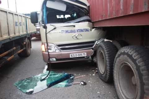 Khi xe vừa qua khỏi ngã tư Giếng Nước được khoảng 100m, lái xe do chạy nhanh không làm chủ tốc độ, đã húc đầu vào đuôi xe đầu kéo container BKS 57M-2271 kéo theo rơ mooc loại 40 feet chạy phía trước.