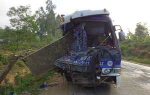 | Phần đầu xe khách bị bẹp dúm |