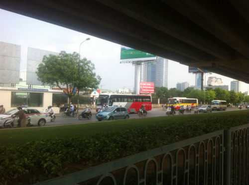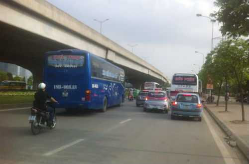 | Đường Phạm Hùng, đoạn chạy qua bến xe Mỹ Đình, xe khách thường xuyên dừng đỗ, di chuyển như "rùa bò" để đón trả khách. |