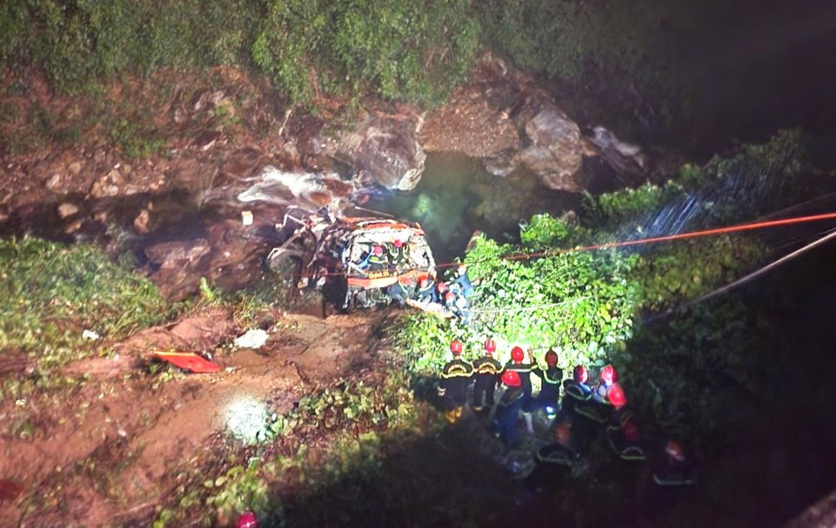 Hiện trường xe khách rơi xuống vực sâu.
