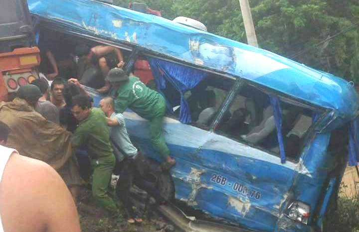 Vụ tai nạn xảy ra vào 14h chiều 8/9, trên QL6 khu vực dốc Cun (tỉnh Hòa Bình). Thông tin ban đầu, vào khoảng thời gian trên một chiếc xe khách và một xe container lưu thông đến địa điểm trên bất ngờ đâm vào nhau, khiến xe khách lao xuống vực.