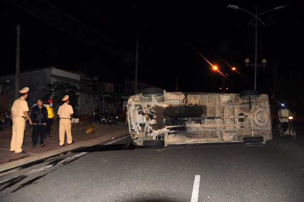 Lúc 4h sáng nay, hiện trường nơi chiếc xe gặp nạn vẫn đang được công an bảo vệ nghiêm ngặt. Nhiều người đi trên xe bị thương nhẹ ngồi ủ rũ bên vệ đường, chiếc xe bị hư hại nặng, một đoạn dải phân cách cũng bị xe tông hỏng.