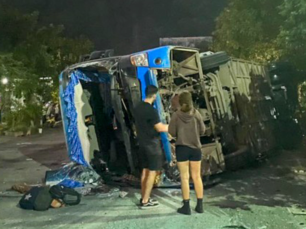Xe khách lật tại hiện trường. (Ảnh: M.Đ)