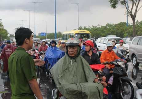 Vụ tai nạn xảy ra đúng vào lúc tan tầm cùng với trời mưa to khiến giao thông qua khu vực này ùn tắc nghiêm trọng.