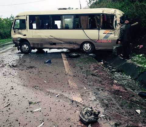 Cú va đập mạnh, khiến 6 hành khách trên xe bị thương, trong đó có 2 người bị thương nặng. Còn chiếc xe ô tô khách cũng bị hư hại nặng.