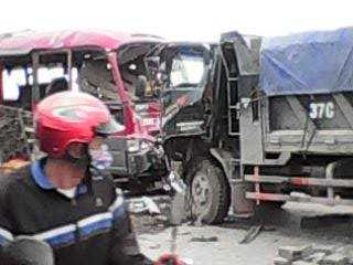 Thông tin ban đầu cho biết, chiếc xe khách mang BKS 37B - 00348 di chuyển hướng từ Nam ra Bắc bất ngờ nổ tung và mất lái, đâm vào chiếc xe tải mang BS 37C-05124 chạy ngược chiều.