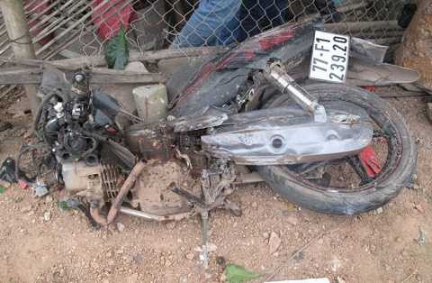 | Chiếc xe máy bị biến dạng. Ảnh: N.P |