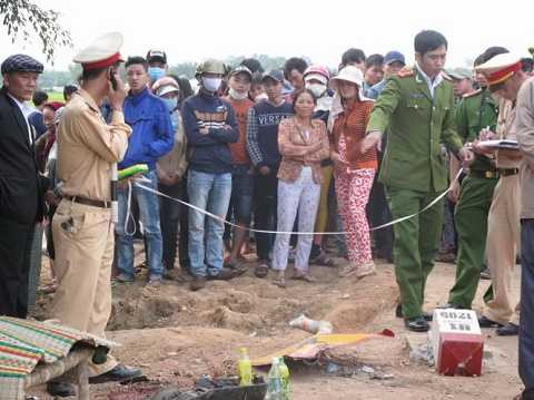 | Lực lượng chức năng tiến hành đo đạc, điều tra vụ việc. Ảnh: N.P |
