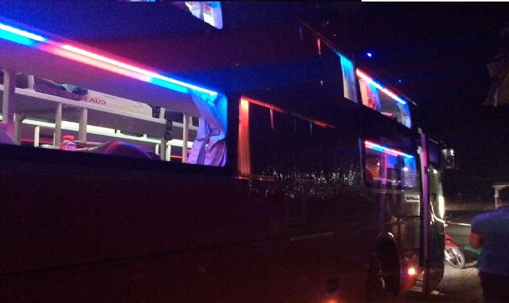 Xe khách qua tuyến tránh Cai Lậy bị ném đá bể kính.