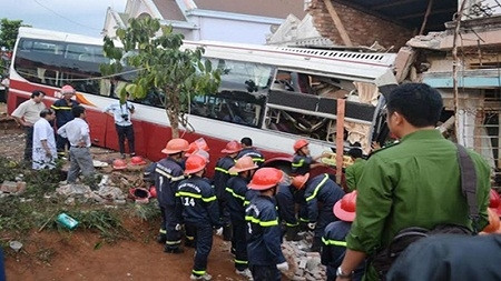 "Do xe khách Thành Bưởi chạy không đúng phần đường quy định dẫn đến va chạm, rồi mất lái lao vào nhà dân, tông 1 người đang đứng gần đó chết tại chỗ. Ước tính thiệt hại vụ tai nạn khoảng 50 triệu đồng", một vị lãnh đạo nói.