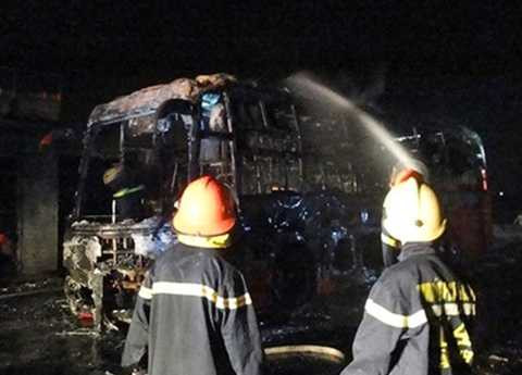 Trước đó, vào khoảng 18h40 ngày 27/3, chiếc xe khách giường nằm 54 chỗ biển kiểm soát 51B - 069.32 của nhà xe Quang Vinh, chủ xe là anh Huỳnh Ngọc Hải (50 tuổi, ở quận 12, TP Hồ Chí Minh) bỗng nhiên bốc cháy dữ dội chỉ còn trơ khung khi đang đậu phía ngoài cảng cá Cửa Sót, xã Thạch Kim, huyện Lộc Hà.