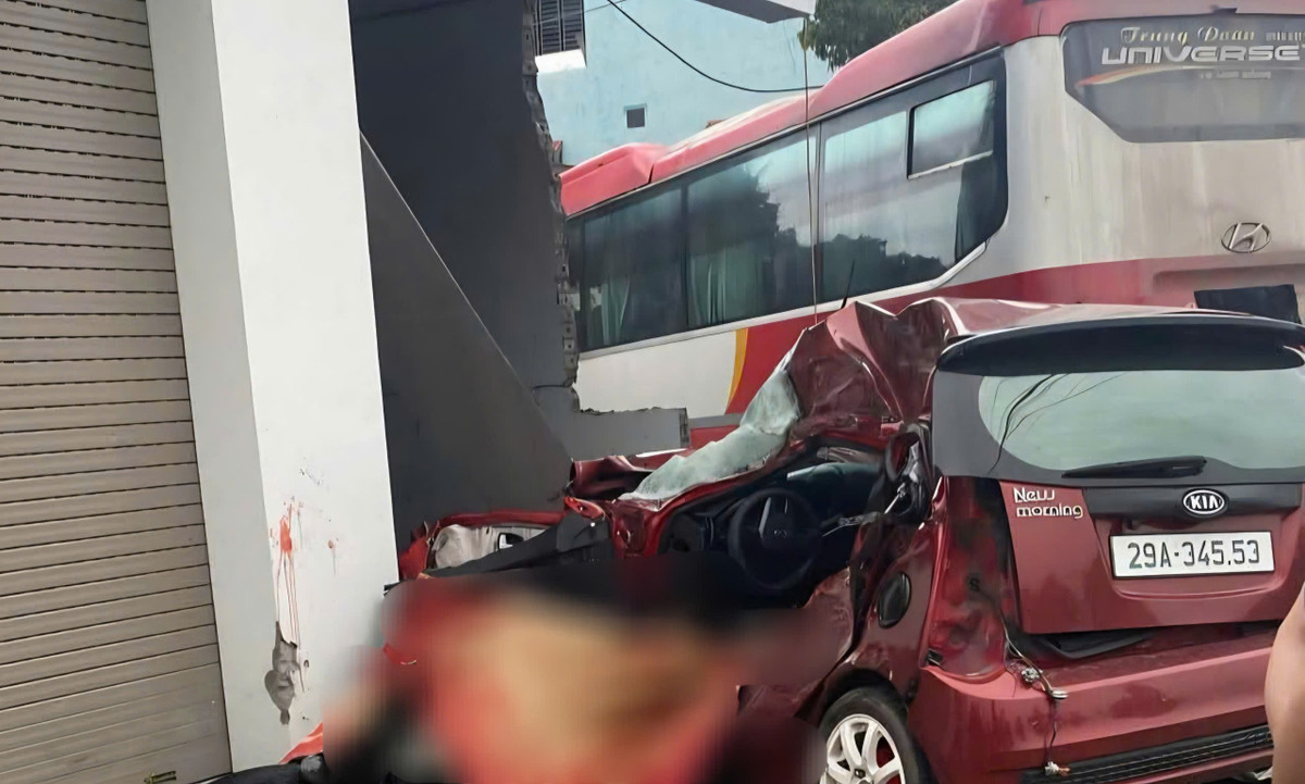 Xe khách 45 chỗ đâm vào ô tô con rồi va chạm với một xe máy, đồng thời làm ảnh hưởng đến một căn nhà gần hiện trường. “Bước đầu lực lượng chức năng xác định, có một người chết tại chỗ, nhiều phương tiện giao thông bị hư hỏng nặng”, ông Cường cho biết thêm.