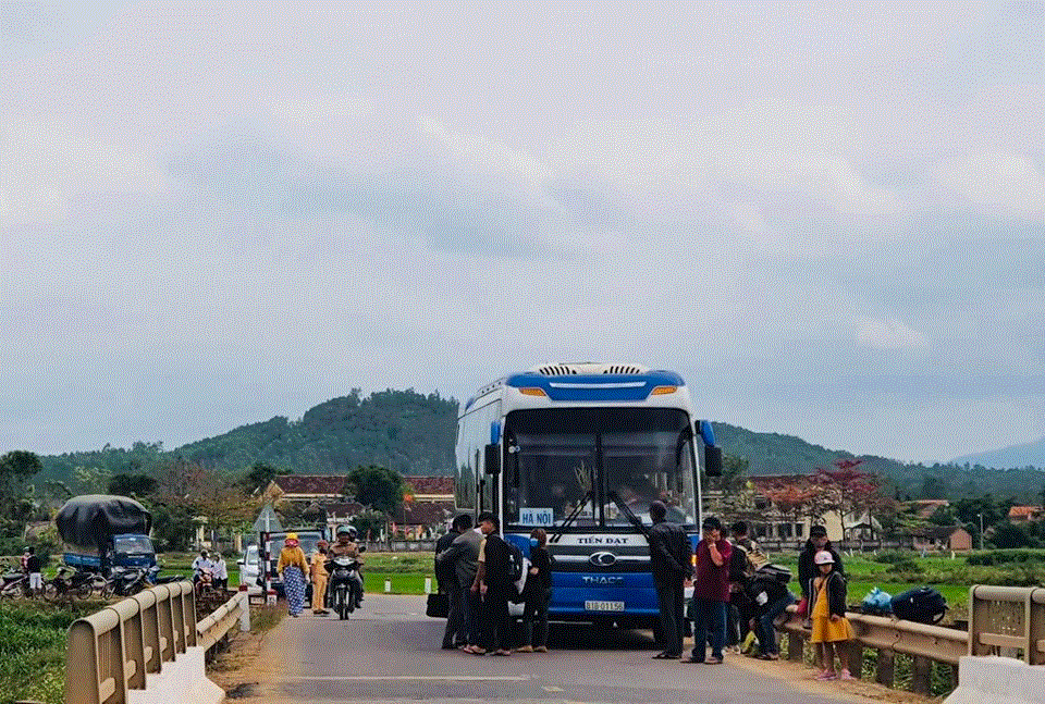 Hành khách được di chuyển qua một xe khách để tiếp tục hành trình