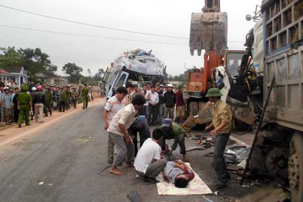 Cú va chạm mạnh làm anh Hảo chết ngay tại chỗ, tài xế xe khách bị thương nặng, phụ xe tải cũng bị xây xát.