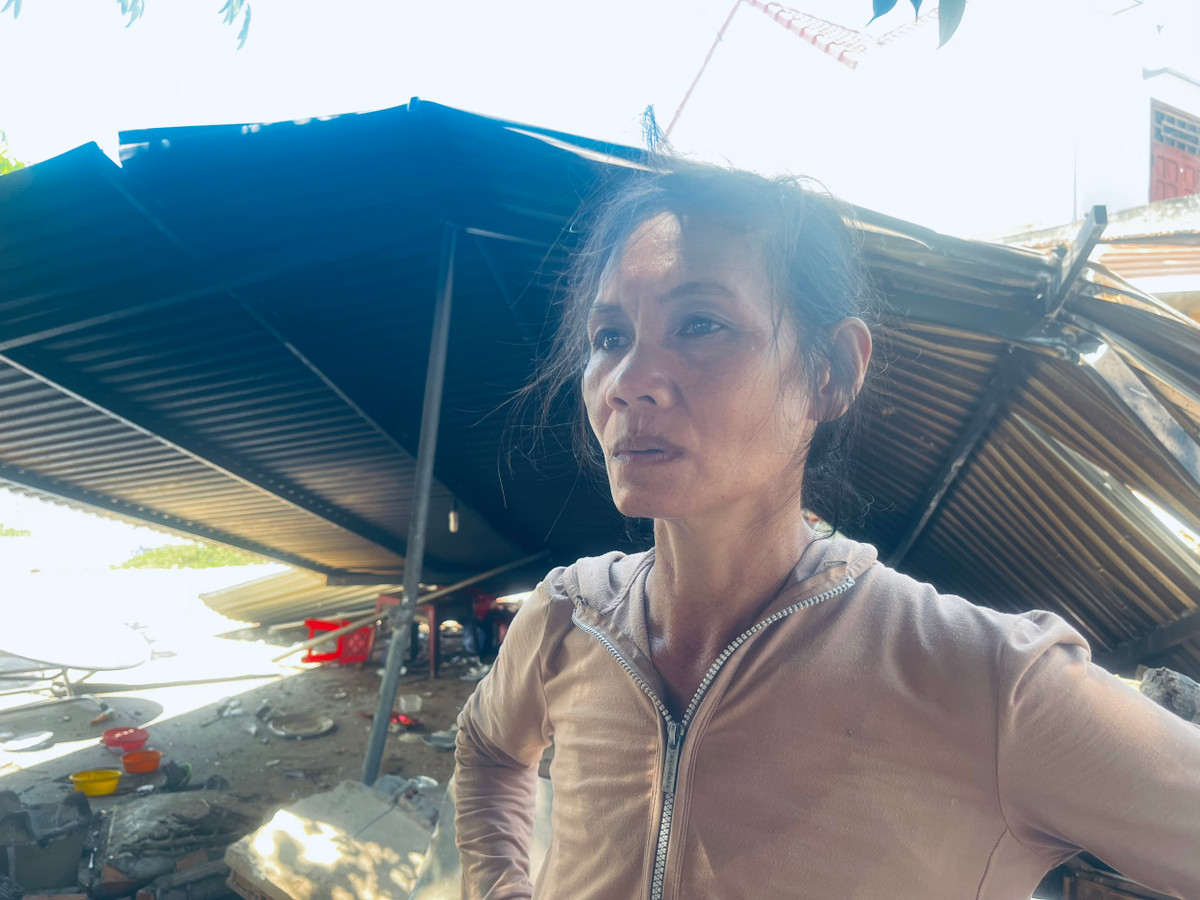 Ngồi thẩn thờ nhìn đống đổ nát, bà Nguyễn Thị Phương (49 tuổi) vẫn chưa hết bàng hoàng, nhưng bà thấy mình may mắn vì thoát nạn.