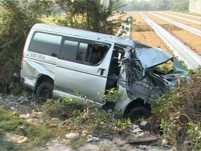 Cùng lúc, do không làm chủ tốc độ, xe khách biển kiểm soát TP.HCM (chưa rõ tên tài xế) chạy hướng Mỹ Thuận - TP.HCM, tông trực diện vào xe tải làm cả 2 xe hư hỏng nặng. Xe khách văng xuống vệ đường cách xe tải trên 30m.