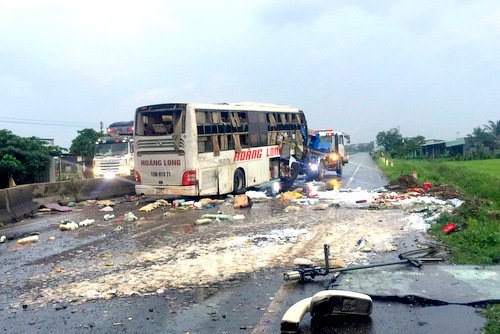 Nhân chứng cho biết, tại thời điểm trên xe khách Hoàng Long mang BKS: 15B - 015.71 do tài xế Nguyễn Văn Tiến (SN 1983, quê Hải Phòng) cầm lái đang đi theo hướng Nam – Bắc.